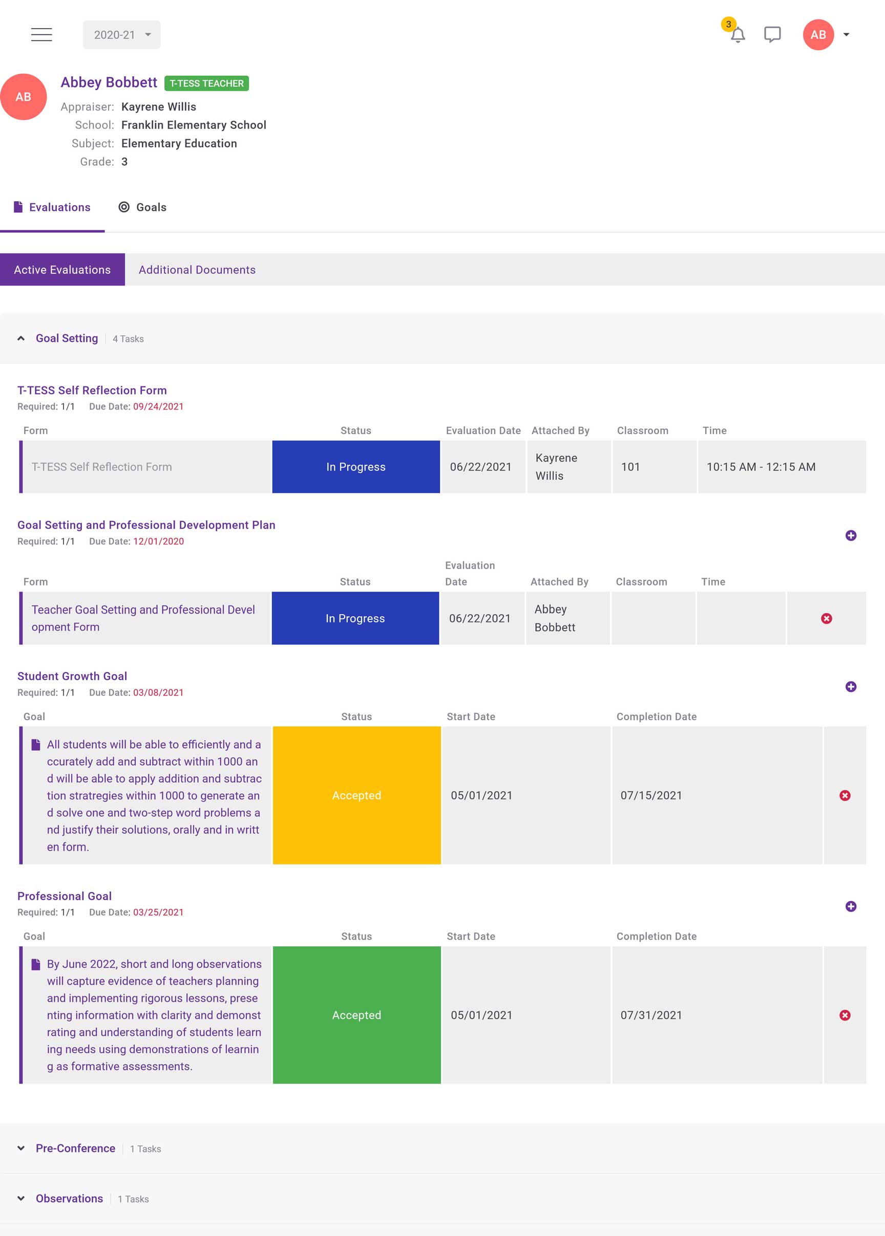 Appraiser is a one-stop shop that manages the entire evaluation process from start to finish and monitors all professional development events and activities in one central location.